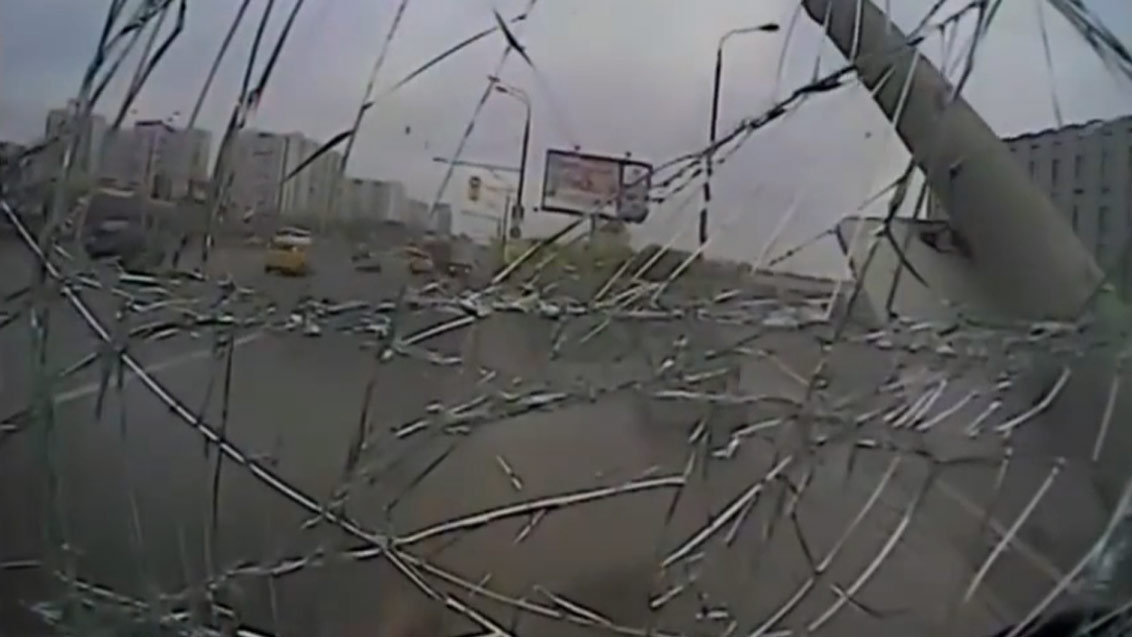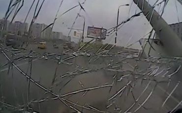 Сам водитель, как можно судить по кадрам, не пострадал, причем первые несколько секунд он не мог понять, что же произошло и почему у его машины разбито лобовое стекло.