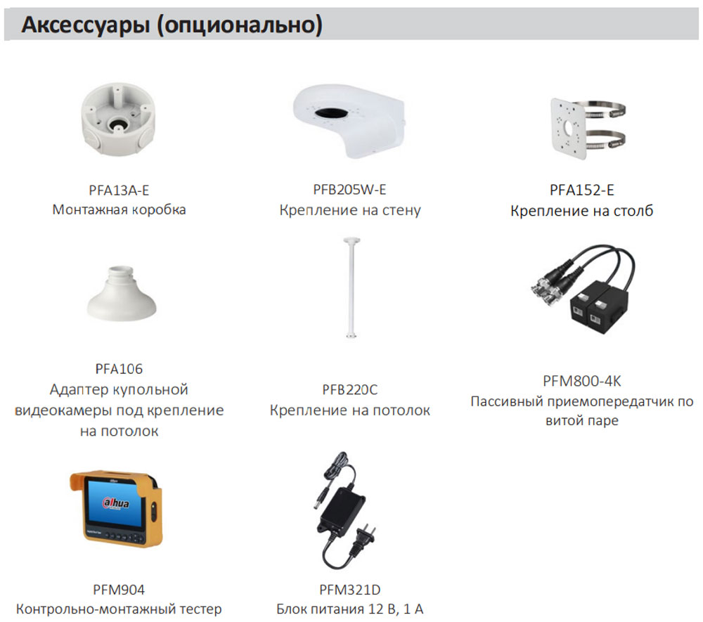 * Аудио вход доступен для некоторых моделей камер HDCVI.
