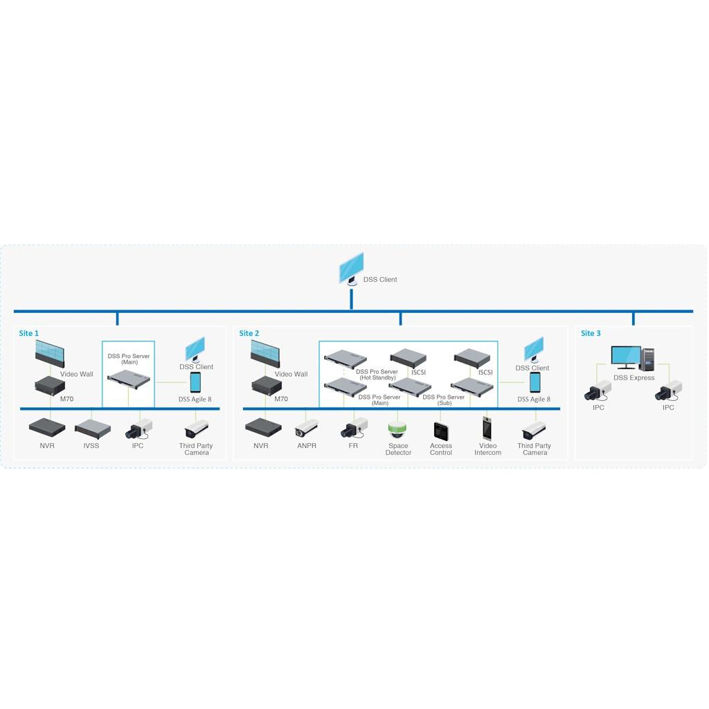 Программное обеспечение Dahua DSS Professional — это универсальная профессиональная платформа централизованного управления системами безопасности. Решение обеспечивает интеграцию видеонаблюдения, контроля доступа, охранной сигнализации, видеодомофонии, радаров и интеллектуальных модулей анализа, включая распознавание лиц и автомобильных номеров.