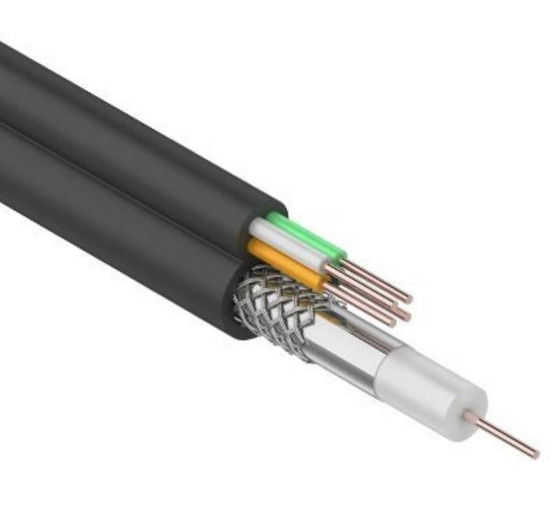 Кабель ККСВ-П+4х0.5 мм состоит из радиочастотного (коаксиального) кабеля и четырех жил питания. Коаксиальный кабель 3с-2v состоит из медного монолитного проводника, вспененного диэлектрика, внешнего проводника из алюминиевых жил в виде оплётки и оболочки из полиэтилена(PE).