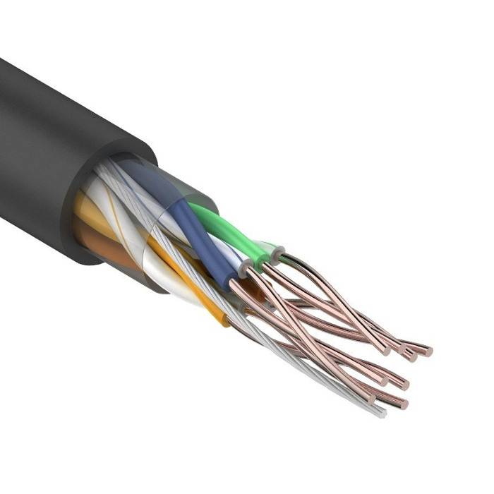 Кабель UTP 4PR 24AWG CAT5e 305м OUTDOOR REXANT. Неэкранированная витая пара, материал проводника высокоочищенная бескислородная медь, диаметром 0,5 мм. (24 AWG). Материал оболочки – ПЭ(PE).