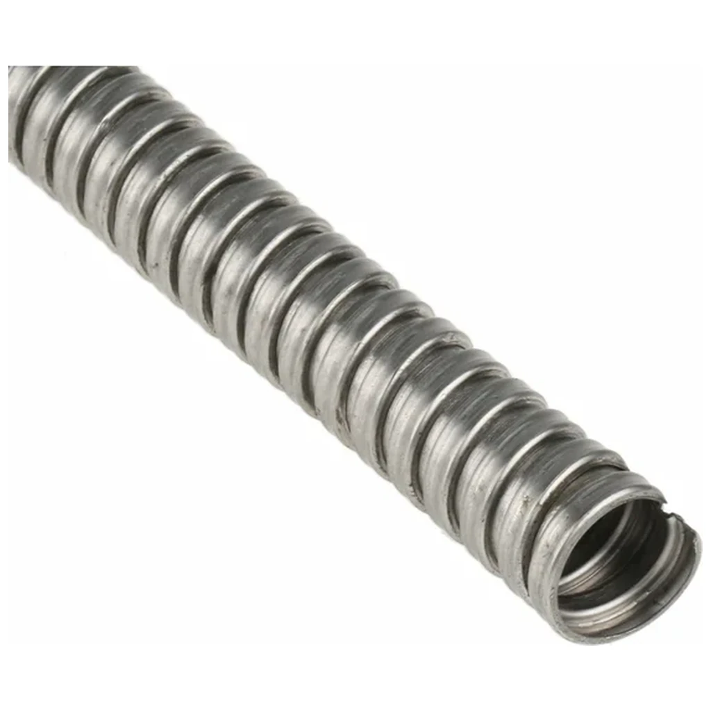 Корпус металлорукава выполнен из оцинкованной стали с ленточным профилем и замковым соединением. Горячее цинковое покрытие образует прочный антикоррозийный барьер, который надёжно защищает стальную основу от воздействия влаги, цементных растворов и агрессивных химических веществ, продлевая срок службы системы. Конструкция без протяжки облегчает протаскивание кабеля с помощью ручных инструментов и позволяет самостоятельно выбирать способ закладки жилы, что особенно удобно при работе с кабелями нестандартного сечения или при многократных переделках трасс.