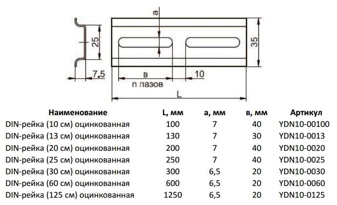 DIN-рейка оцинкованная; длина 200 мм; ширина 35 мм; высота 75 мм; толщина 1 мм.