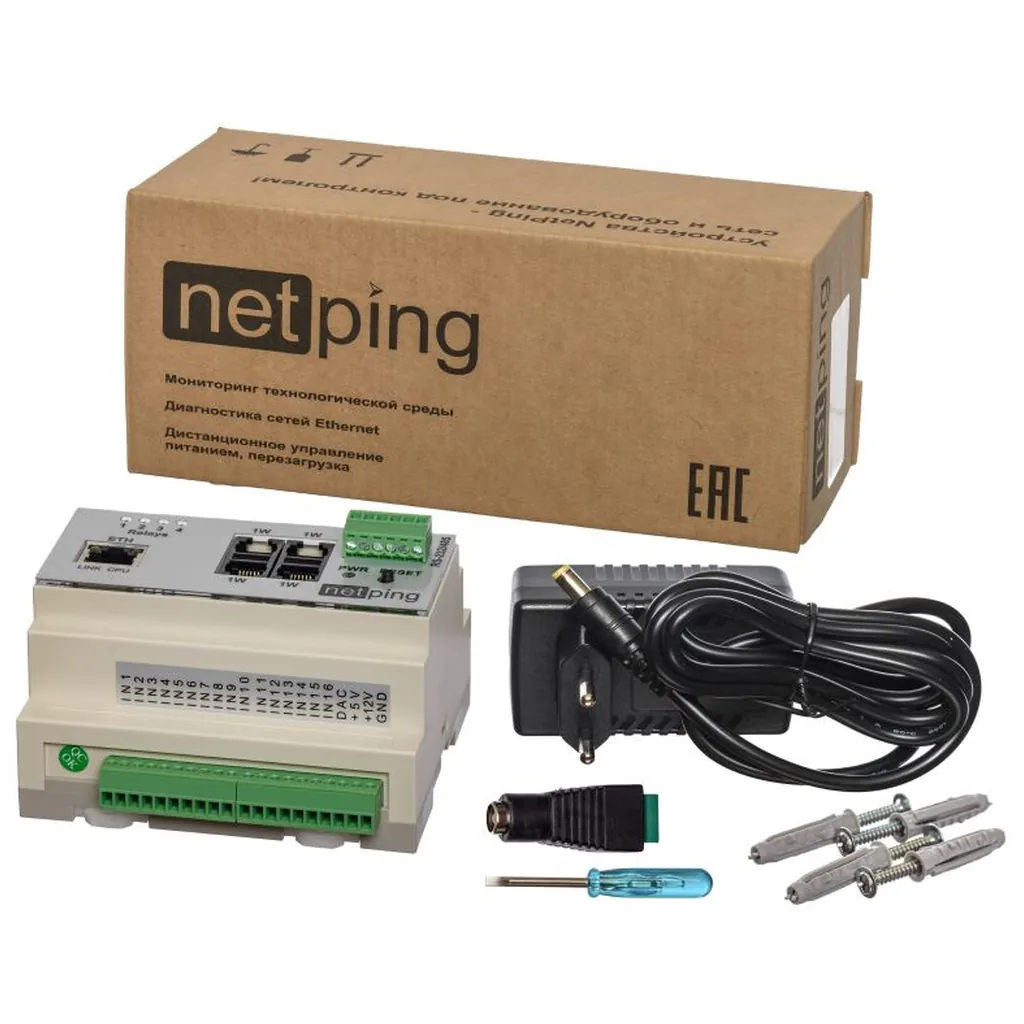 Устройство удаленного мониторинга датчиков и управления по сети Ethernet на DIN-рейку. 4xRelay/16xIn/4xOut/4x1w/1xEth.