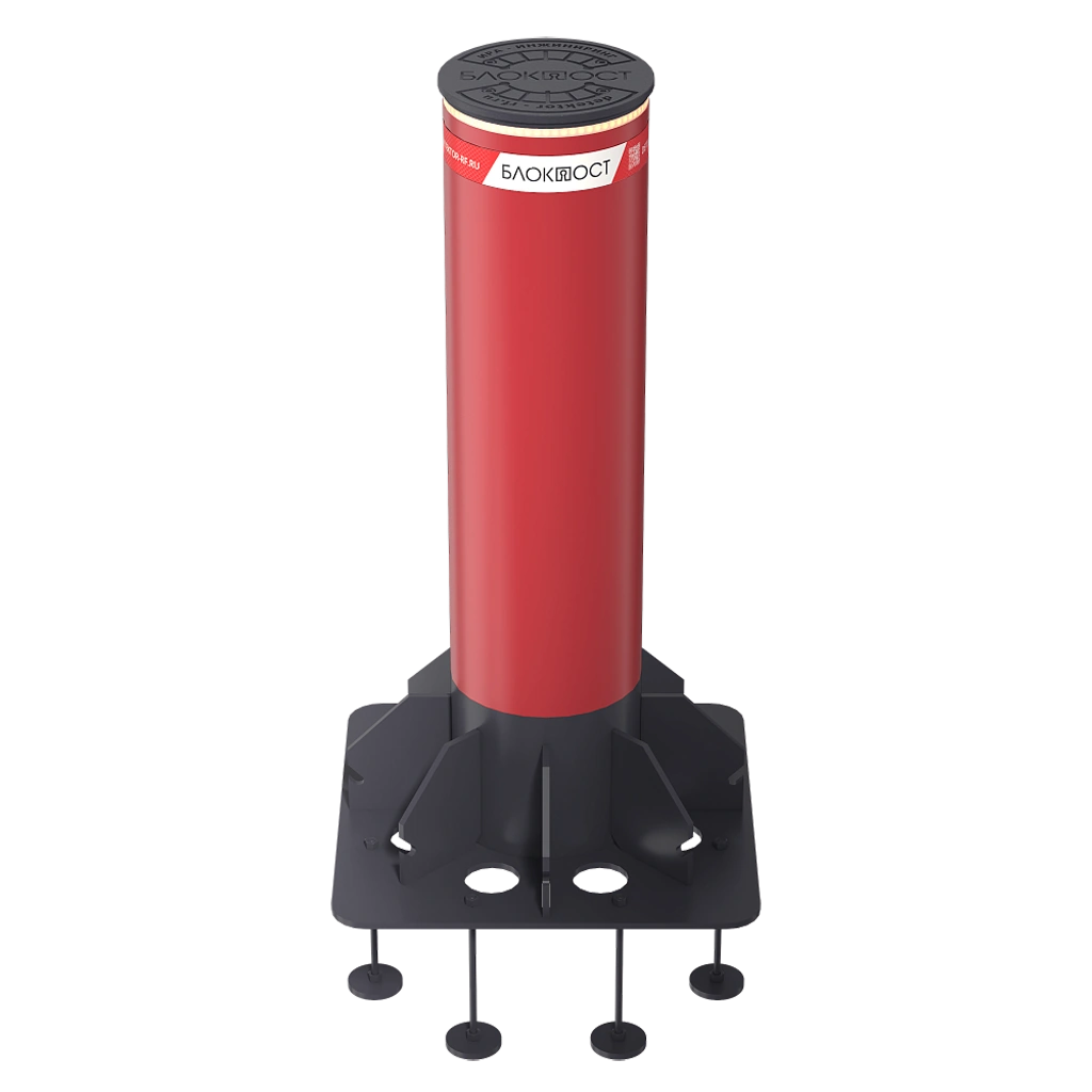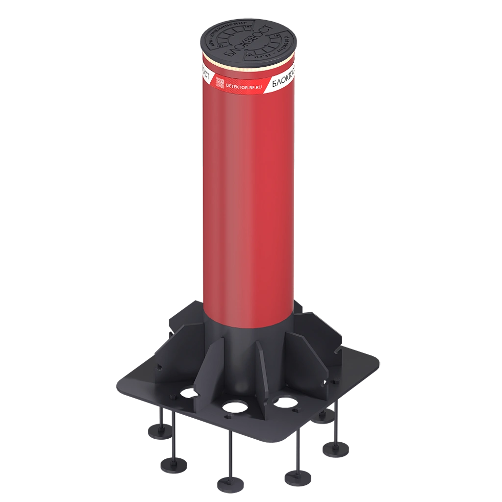 Корпус цилиндра выполнен из прочной окрашенной стали толщиной не менее 25 мм, покрытой износостойким защитным слоем по шкале RAL. Это обеспечивает не только высокую механическую прочность, но и устойчивость к коррозии и внешним воздействиям. Основание и крышка выполнены из антикоррозийного чугуна, окрашенного защитным составом. Красная светодиодная подсветка делает боллард заметным в темное время суток, повышая безопасность эксплуатации.