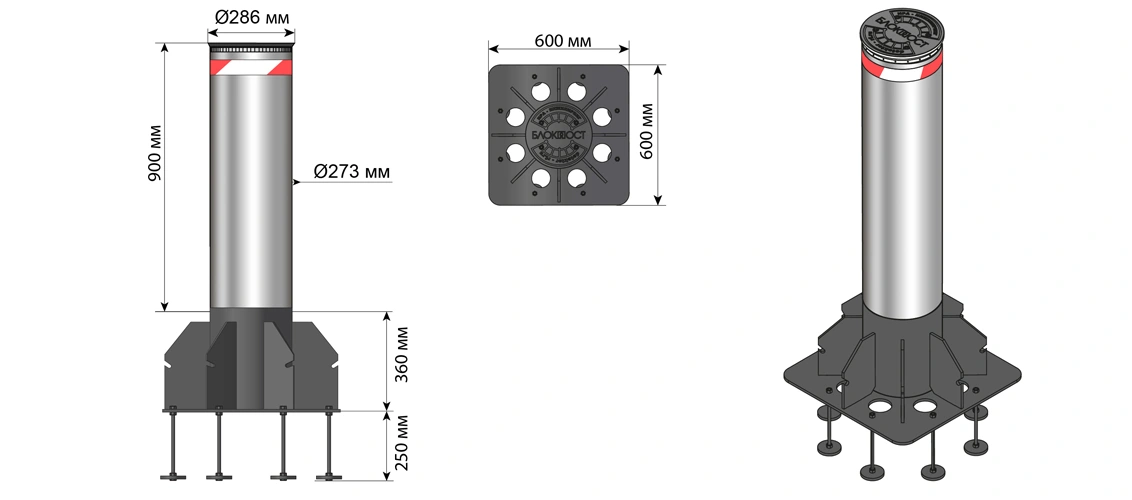 - Боллард способен выдерживать удар с энергией до 700 кДж без каких-либо видимых деформаций конструкции. Это гарантирует сохранение целостности столба даже при сильнейших механических воздействиях.
