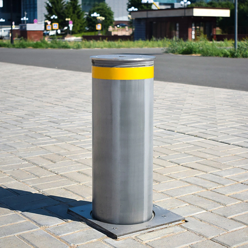 Корпус болларда выполнен из стальной трубы диаметром 219 мм и толщиной стенки 8 мм, что обеспечивает необходимую жесткость и устойчивость к ударным нагрузкам. Рабочая высота над уровнем дороги составляет 600 мм, чего достаточно для эффективного перехвата передних узлов автомобиля при таране. Светодиодная подсветка красного цвета повышает заметность устройства в темное время суток, а болты-«секретки» предотвращают несанкционированный демонтаж. Такое исполнение делает боллард удобным решением для временно перекрываемых проездов на промышленных, административных и транспортных объектах.