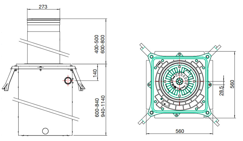 • Диаметр выдвижного цилиндра: 273 мм