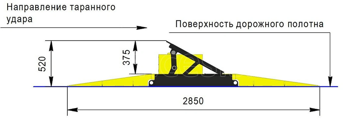 - Тип конструкции: Противотаранный дорожный блокиратор накладного типа