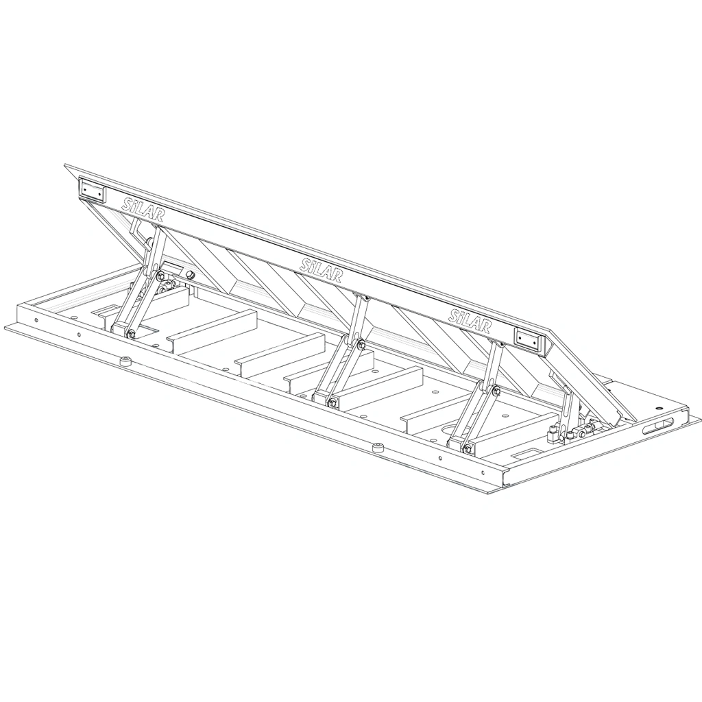 Дорожный блокиратор Silar ПЗП-3000ЭМЗ с центральным приводом — это надёжное противотаранное устройство заглубляемого типа, предназначенное для перекрытия проезда и защиты территорий от несанкционированного въезда транспорта. Конструкция представляет собой прочную сварную раму с поворотной заградительной платформой, управляемой электромеханическим приводом, расположенным в центральной части корпуса. Такое расположение обеспечивает симметрию конструкции, равномерное распределение нагрузки и возможность стыковки нескольких блокираторов в непрерывную линию, перекрывающую проезд любой ширины.