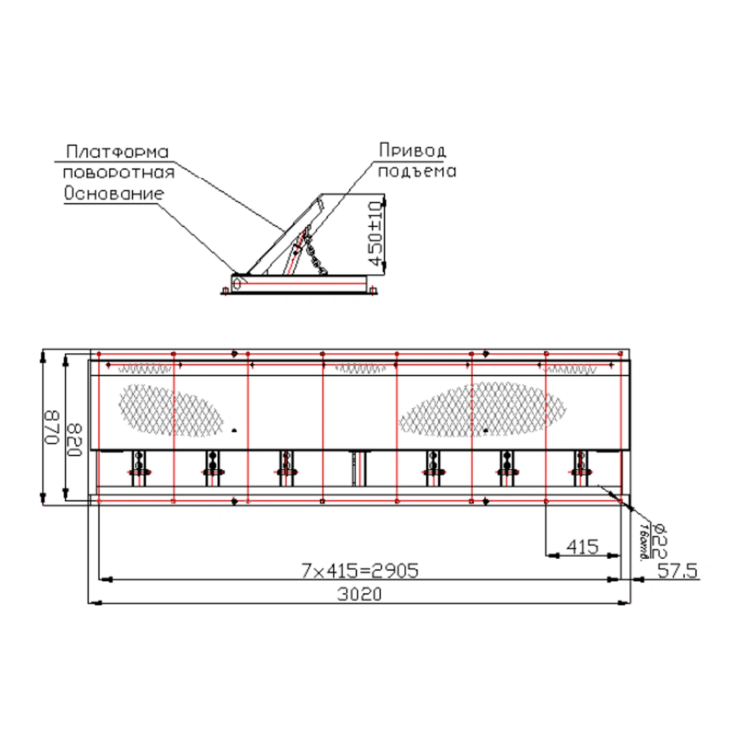 - Высота подъема заградительной платформы: 450 ± 15 мм