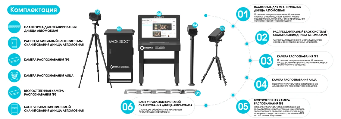 Стационарная система сканирования днища автомобиля БЛОКПОСТ PRIZMA 01 C — профессиональный комплекс для контроля транспортных средств на КПП и периметрах с повышенными требованиями к безопасности. Решение сочетает технологии линейного и площадного сканирования, формируя детализированное изображение нижней части автомобиля в реальном времени для выявления контрабанды, оружия, закладок и иных угроз.