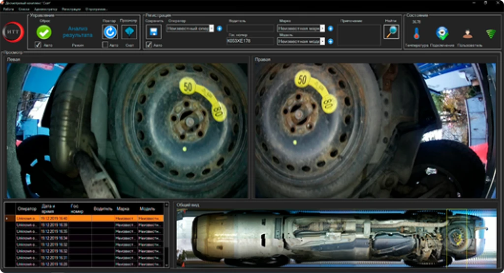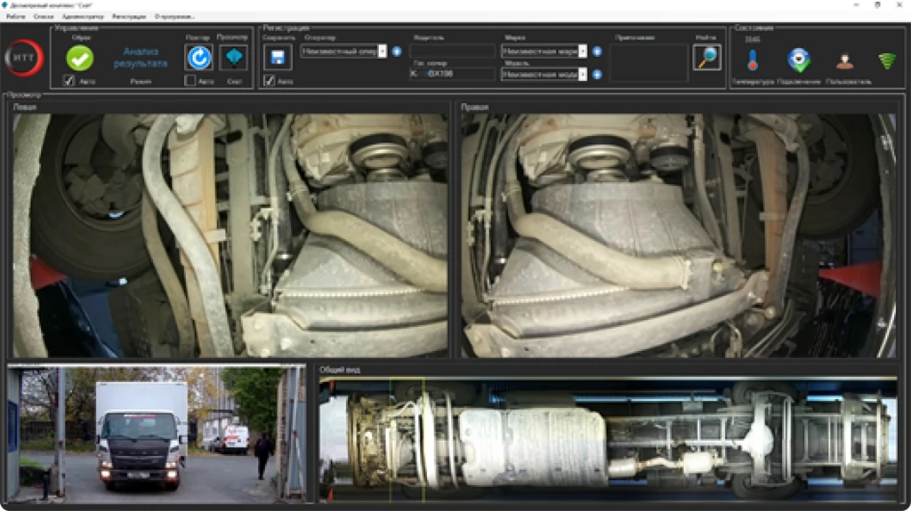 - Фото и видеофиксация днища транспортного средства с отображением результатов контроля на автоматизированном рабочем месте для детального анализа