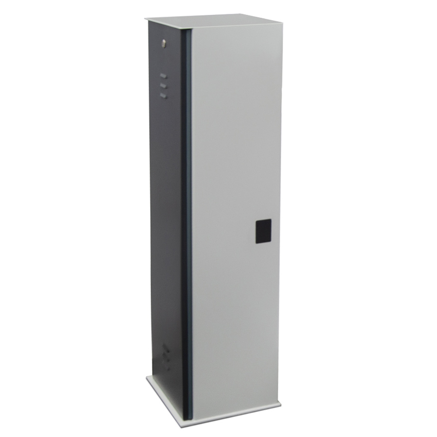 Тумба шлагбаума – оцинкованная сталь, покрытая порошковой краской. RAL 7035 (светло-серый) и RAL 7015 (темно-серый).