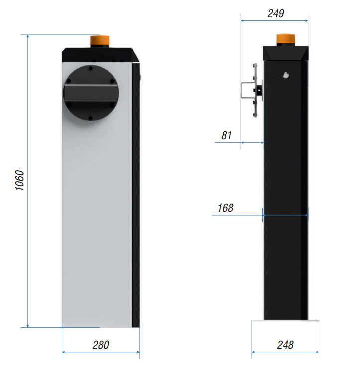 • Тумба шлагбаума «RBS-R» с беспружинным механизмом для правосторонней установки