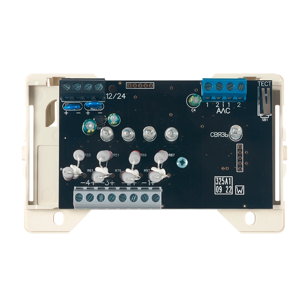 - Оснащен датчиком вскрытия, в качестве которого используется кнопка ТЕСТ