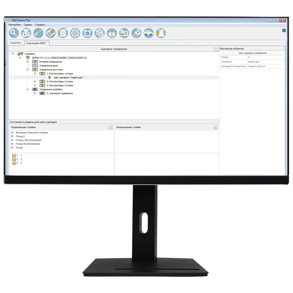 УРМ с помощью предустановленного программного обеспечения из пакета программ АРМ «Орион Про» при условии активации соответствующих лицензий на сервере обеспечивает: