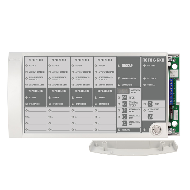 Благодаря компактным габаритам, весу не более 0,6 кг и удобной конструкции, Поток-БКИ легко монтируется на стенах или других конструктивных элементах помещений. Устройство обеспечивает световую и звуковую индикацию, демонстрируя четкую информацию о состоянии каждого из 4 пожарных агрегатов и дополнительных пожарных разделов. Индикаторы и встроенный звуковой сигнализатор оперативно сообщают о возникновении аварий, неисправностей или изменениях в режиме работы системы, что позволяет оперативно реагировать и принимать необходимые меры для устранения проблемы.