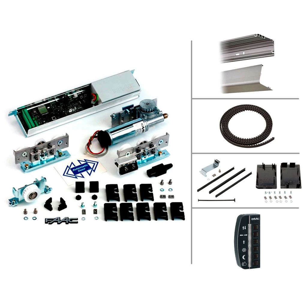 Комплект A1000_1_LONG представляет собой готовое решение для автоматизации одностворчатых раздвижных дверей шириной до 3 метров и весом до 110 кг. В основе находится промышленный привод FAAC A1000, соответствующий требованиям EN 16005 и обладающий высокой надёжностью, широкими возможностями настройки и плавной работой за счёт двигателя на 36 В с оптическим энкодером. Комплект включает несущий профиль, лицевую крышку, зубчатый ремень и необходимые монтажные аксессуары, что позволяет собрать полноценную дверную автоматику под конкретный объект.
