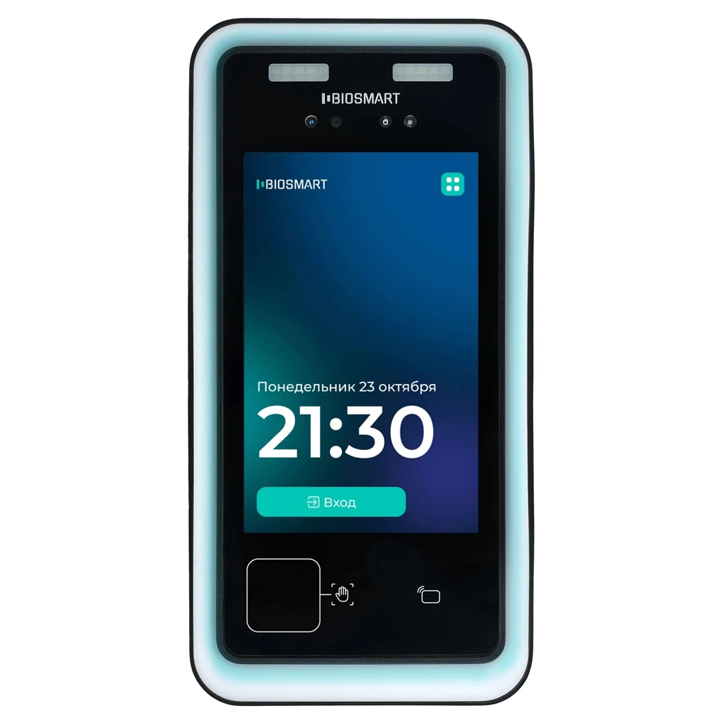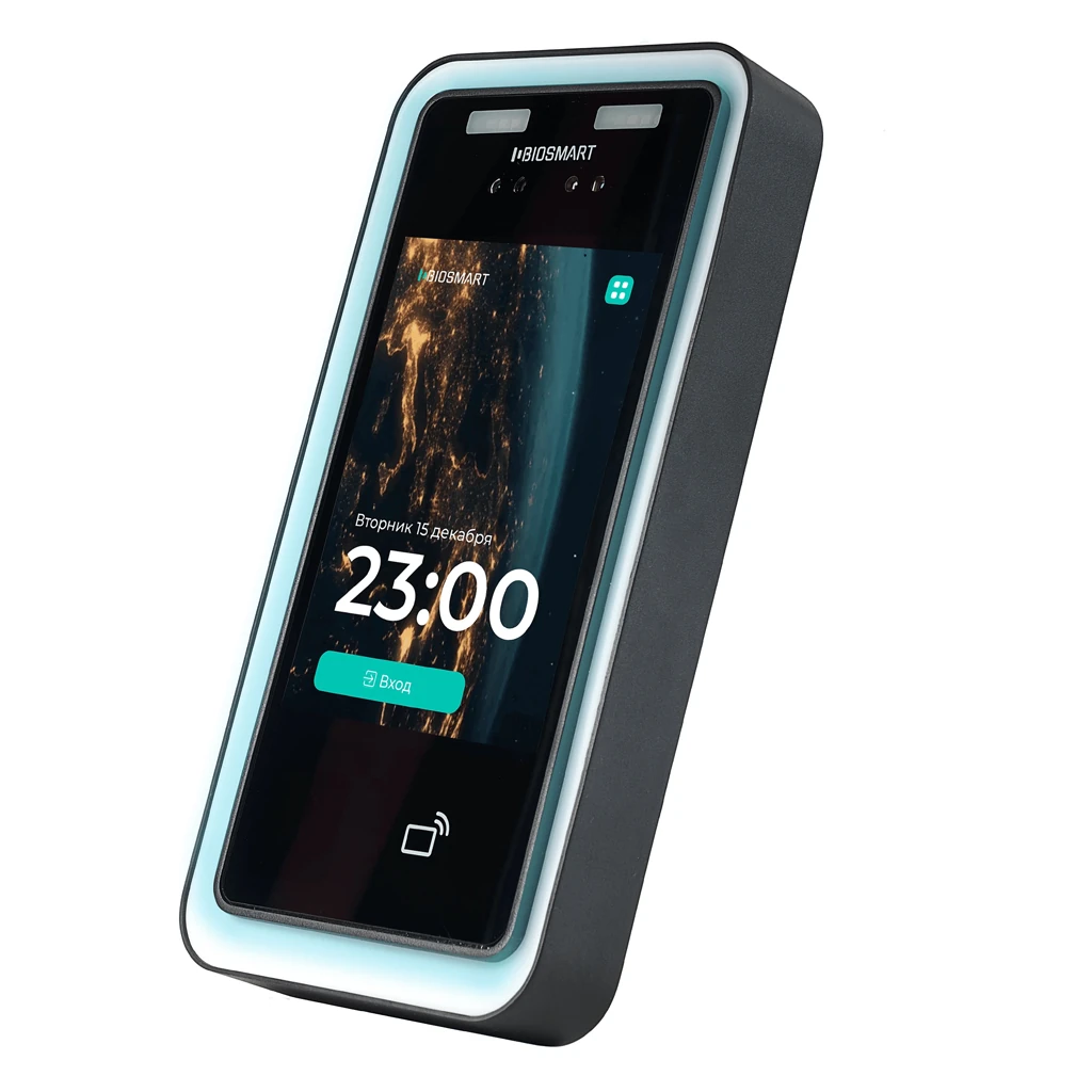Терминал оснащён встроенным RFID-считывателем и поддерживает идентификацию по смартфонам с использованием технологии NFC, что позволяет комбинировать различные способы доступа в рамках одной системы. Устройство интегрируется с программным обеспечением BioSmart-Studio и внешними системами СКУД по интерфейсам Ethernet, Wiegand и RS-485. Сенсорный дисплей диагональю 7 дюймов обеспечивает удобное взаимодействие с пользователем, а поддержка питания по PoE упрощает монтаж и снижает требования к кабельной инфраструктуре.