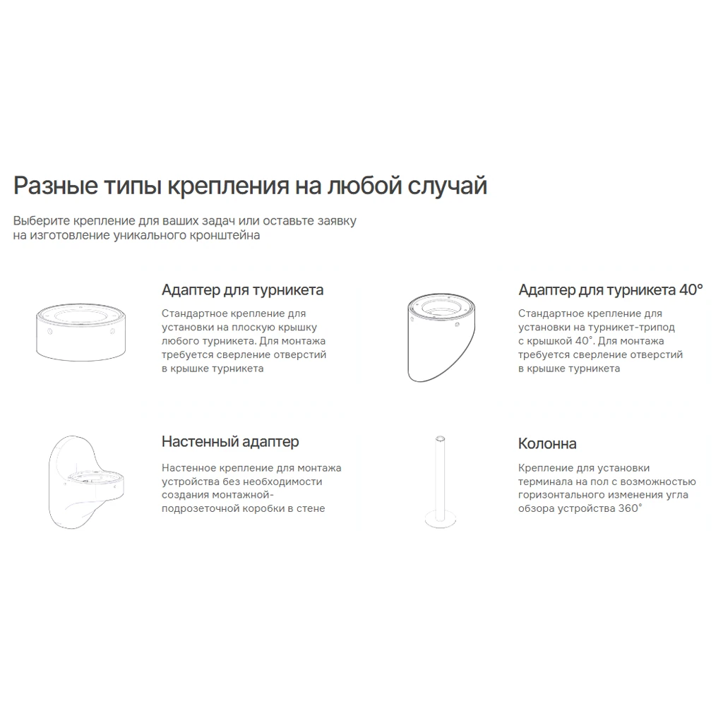 - Варианты крепления с коррекцией высоты и угла установки