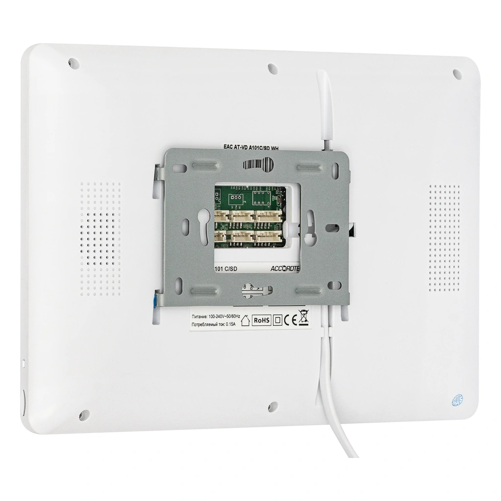 Видеодомофон AT-VD A101 C/SD WH — современное решение для организации системы контроля доступа в жилых и офисных зданиях. Оснащенный 10-дюймовым сенсорным экраном с разрешением 1024×600, он обеспечивает четкое и удобное отображение изображения в формате AHD и CVBS. Благодаря поддержке записи по детектору движения и возможности сохранения данных на карту памяти microSD объемом до 128 ГБ, устройство подходит для создания надежной системы видеонаблюдения и фиксации событий.