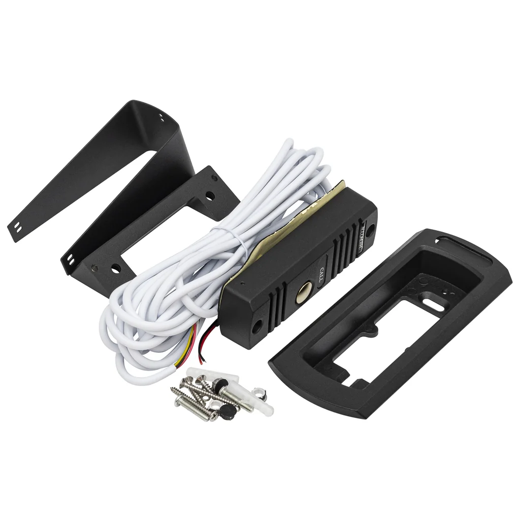 Устройство поддерживает стандартный формат видеосигнала CVBS, что гарантирует совместимость с большинством аналоговых мониторов и видеодомофонов. Благодаря углу обзора 68° камера позволяет контролировать пространство перед дверью и фиксировать все события у входа. В комплект входят дополнительные аксессуары — козырек, кронштейн для врезного монтажа и угловой кронштейн, позволяющий установить панель под углом 30° для оптимального обзора.