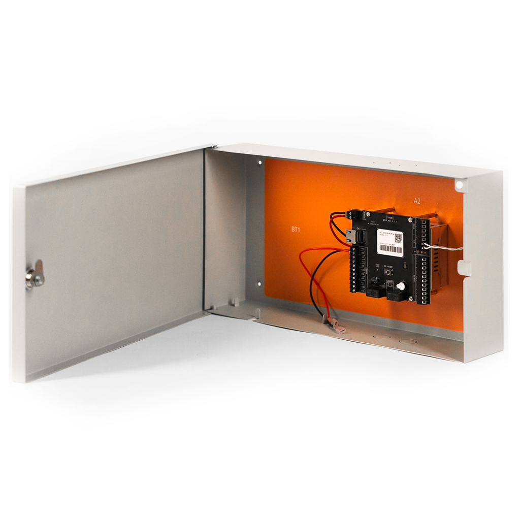 E210 UPS – это расширенная комплектация контроллера E210 EMB. В специализированный металлический корпус устанавливаются контроллер и блок питания (входное напряжение 230 В, выходное напряжение 12 В), также предусмотрен отсек для аккумуляторной батареи. По вашему запросу комплектация решения может быть дополнена аккумуляторной батареей, однако по умолчанию в состав E210 UPS она не входит.