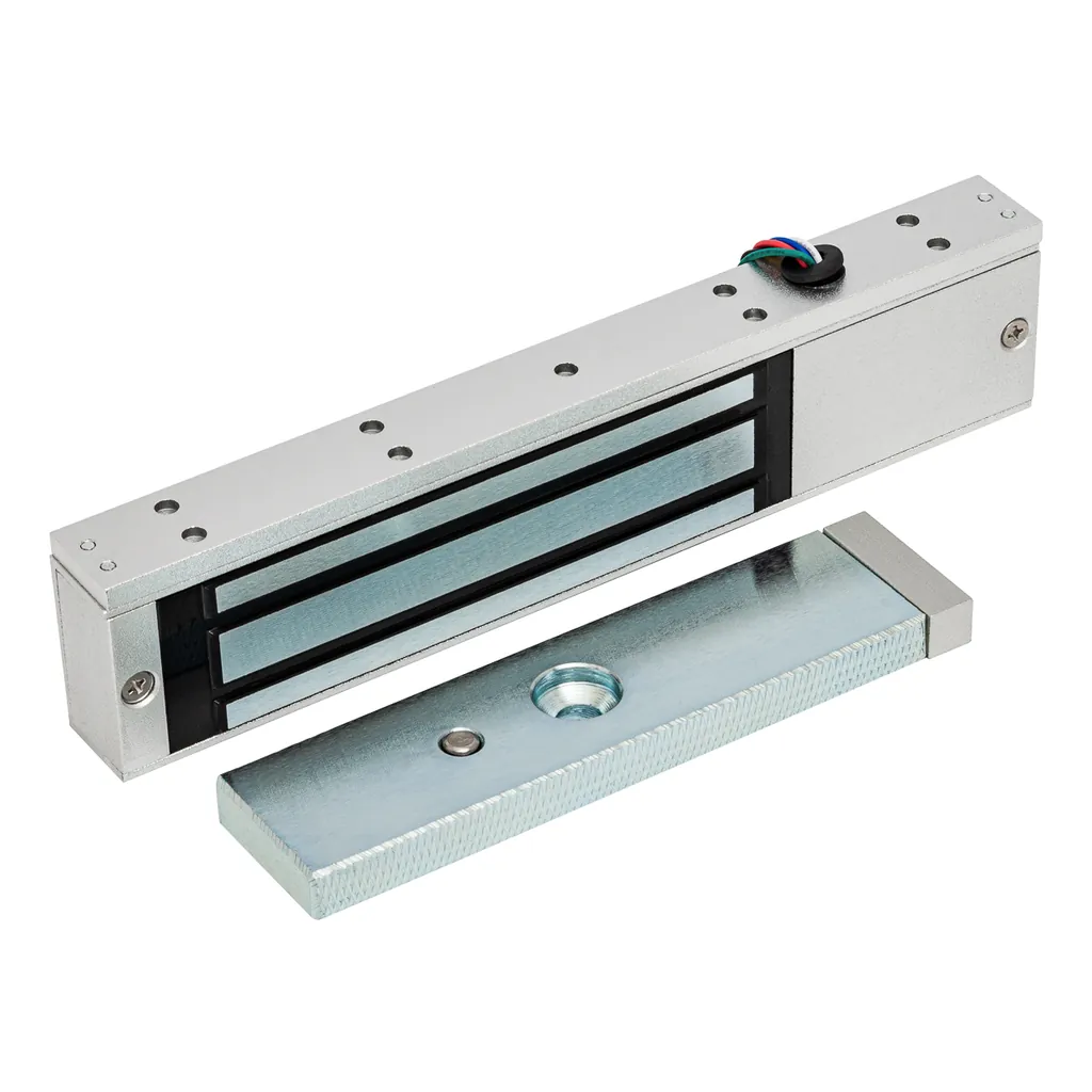 Замок работает от питания 12 или 24 В, а встроенный герконовый датчик положения двери позволяет отслеживать состояние закрытия. Кроме того, устройство оснащено двухцветной световой индикацией, которая облегчает визуальный контроль работы. Электромагнит обладает усилием удержания 180 кг, что обеспечивает надежное фиксирование двери в закрытом положении и препятствует несанкционированному доступу.