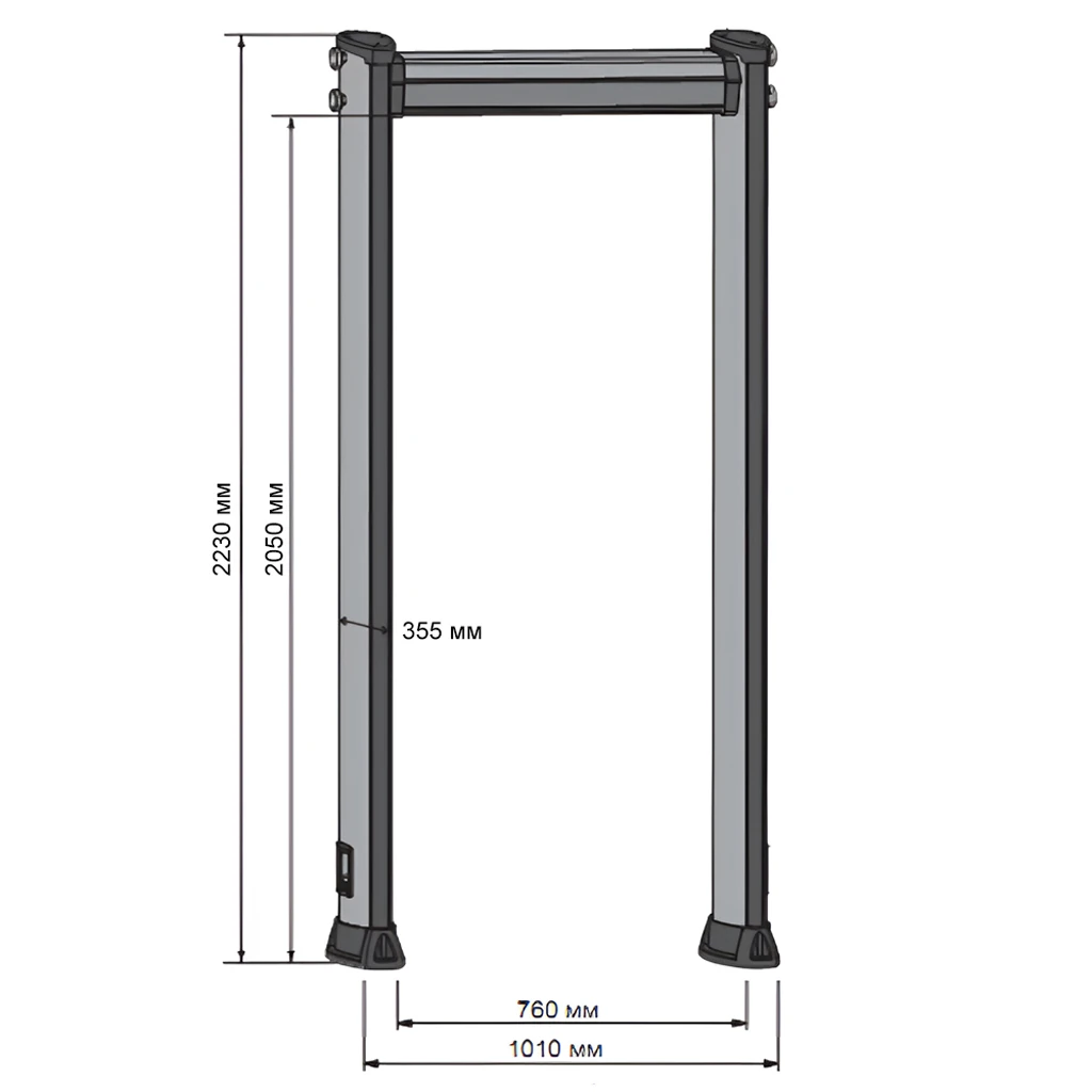 - Габариты металлодетектора: 2230 × 1010 × 350 мм.