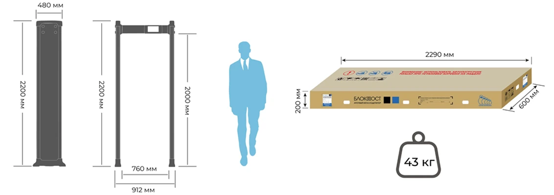 - Габариты прохода (Д×Ш×В): 480×760×2000 мм