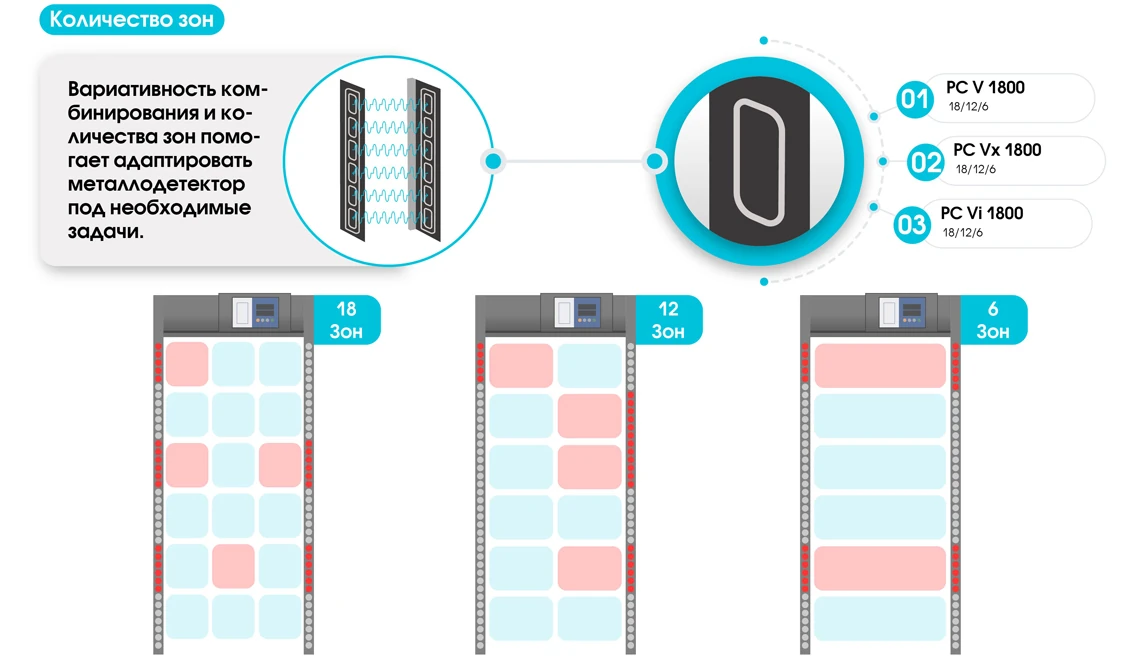 - Конфигурация зон: 6 / 12 / 18 с точной локализацией предмета.