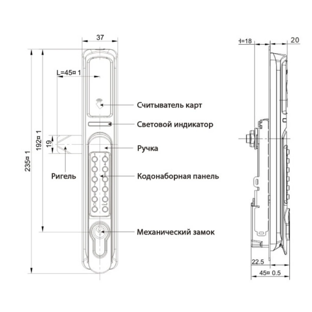 Вид считывателя | Бесконтактный RFID с кодонаборной клавиатурой |