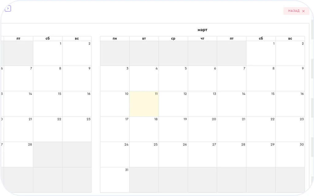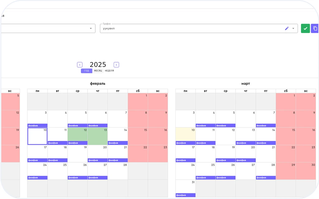 Гибкая настройка графиков — планируйте смены в зависимости от графика работы сотрудников. Есть возможность сдвигать графики, если работа попадает на праздничные дни. Функция позволяет увидеть и посчитать, в какие дни и какие смены будет работать сотрудник.