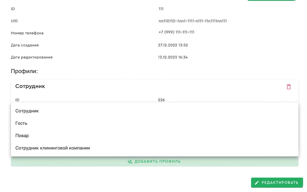 - Профили персоны — разграничение прав доступа в зависимости от роли пользователя: для сотрудников, гостей и подрядчиков.