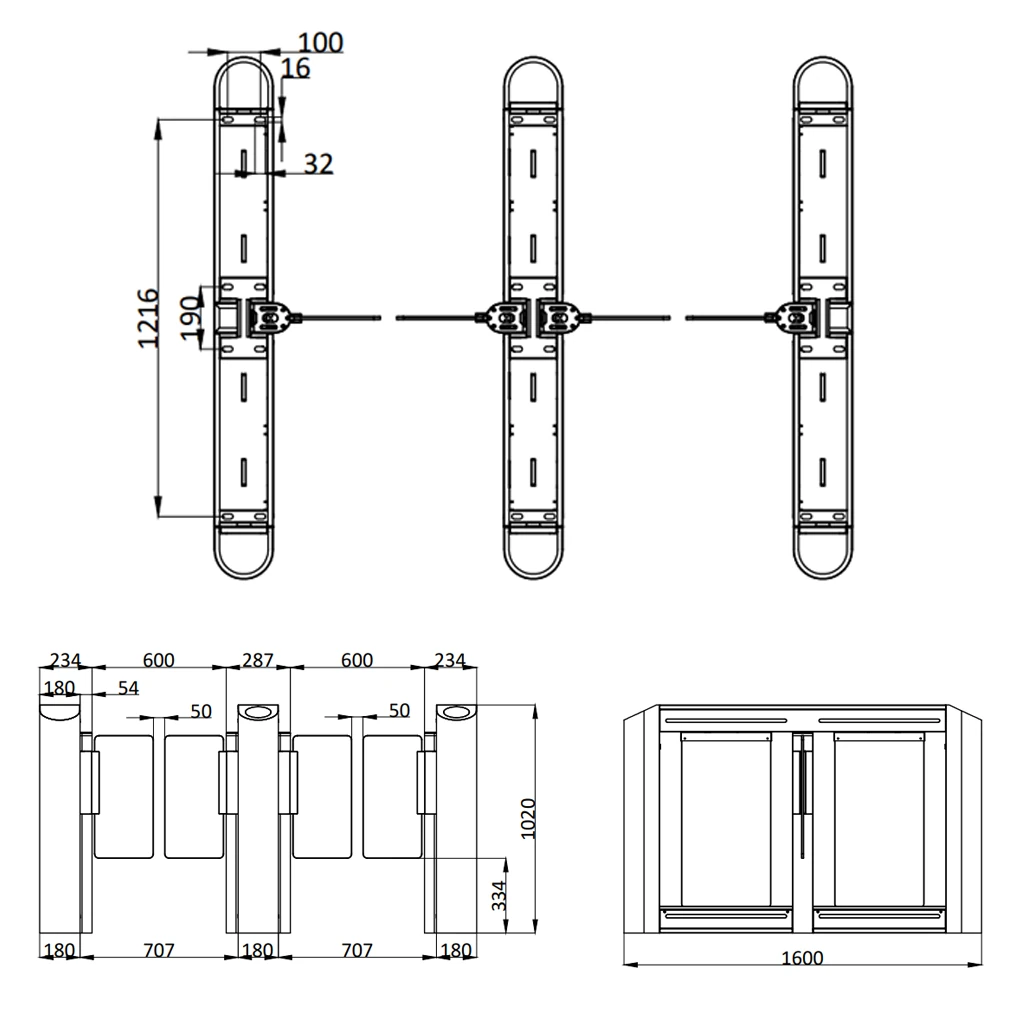 - Створки турникета автоматически разблокируются при отключении питания, что соответствует требованиям пожарной безопасности;