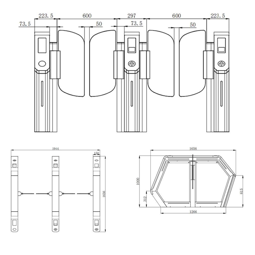 - Створки турникета автоматически разблокируются при отключении питания, что соответствует требованиям пожарной безопасности;