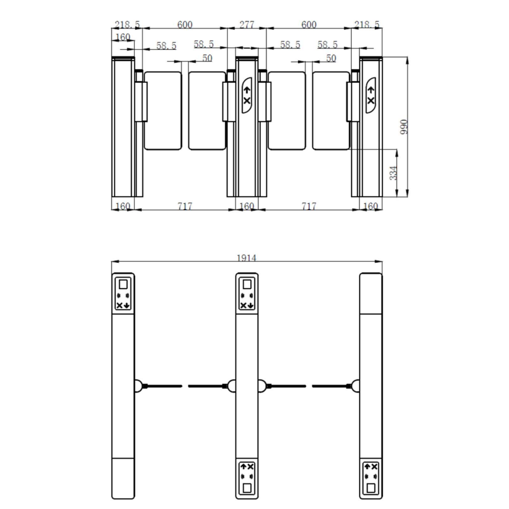 - Створки турникета автоматически разблокируются при отключении питания, что соответствует требованиям пожарной безопасности;