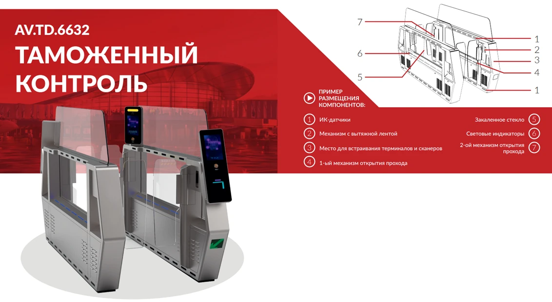 Турникет распашной Avix E-gate AV.TD.6632 — это специализированное решение, созданное для организации таможенного контроля в аэропортах, вокзалах и других объектах с интенсивным пассажиропотоком. Конструкция обеспечивает надежный учет и проверку каждого пассажира, исключая возможность одновременного прохождения нескольких человек через шлюз. Модель отличается высокой пропускной способностью, устойчивостью к нагрузкам и современным дизайном, который гармонично вписывается в инфраструктуру транспортных узлов.