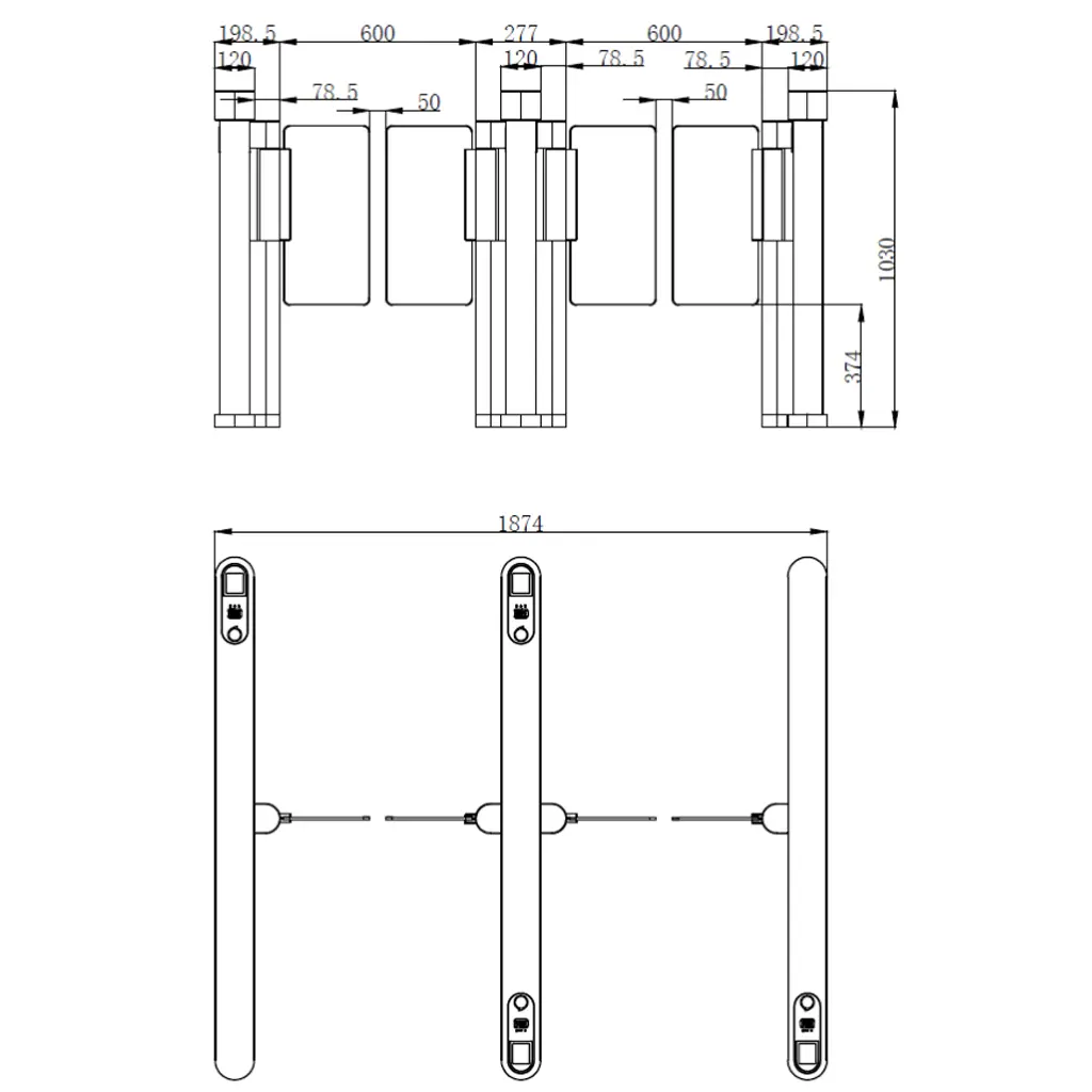 - Створки турникета автоматически разблокируются при отключении питания, что соответствует требованиям пожарной безопасности;